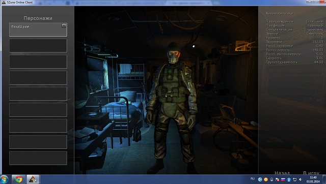 7. Скриншоты окна выбора игрового персонажа, уровней персонажа.