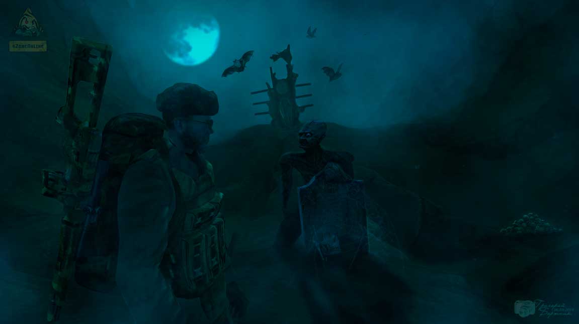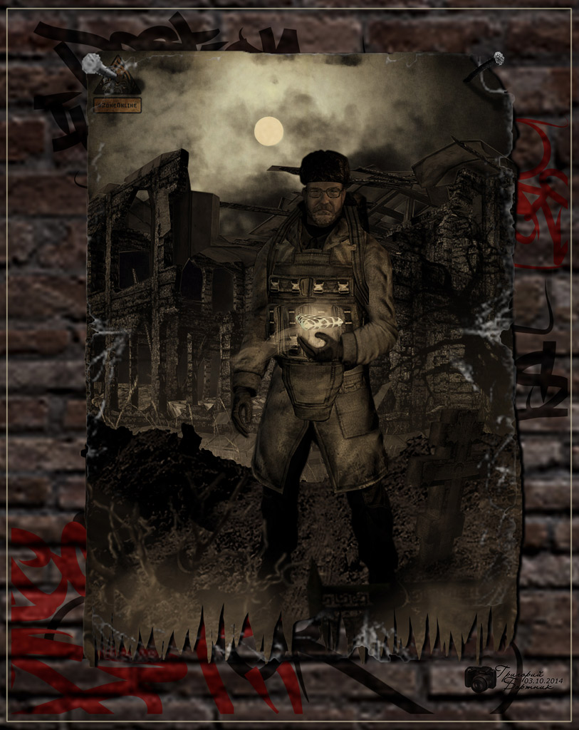 В этом мрачном, мрачном мире, под этой тяжелой, тяжелой, ну очень тяжелой могильной плитой. Лежат рассыпанные, иссушенные, истлевшие останки сталкера Dos200. Убитого мной во имя восстановления справедливости этого призрачного, хрупкого мира. Но его неугомонная душа, в виде зомби, или личине отверженного, бродит по бескрайним просторам его Величества ЗОНЫ. Встретив привидение под видом Dos200, СТАЛКЕР! БУДЬ БДИТЕЛЕН!! Поведение зомбака непредсказуемы.