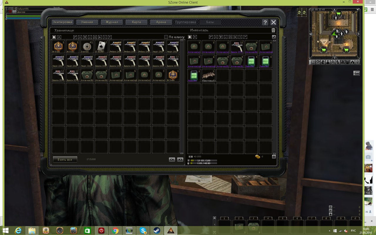 тут еще такое дело у меня нет не брони не оружия ,зато много аптечек и иньекторов( см фото)