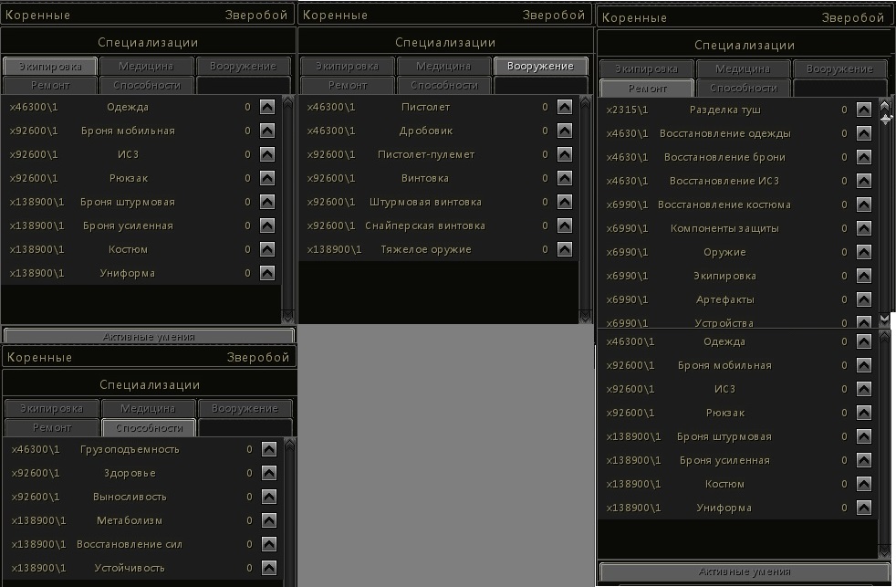 Зверобой учится определять, какие части тела наиболее ценны, с точки зрения продажи и коллекционирования, какие можно употреблять в пищу без последствий и что будет эффектнее всего смотреться в качестве трофея. А его богатырское здоровье и выносливость часто упоминаются в сталкерских легендах, песнях и байках.