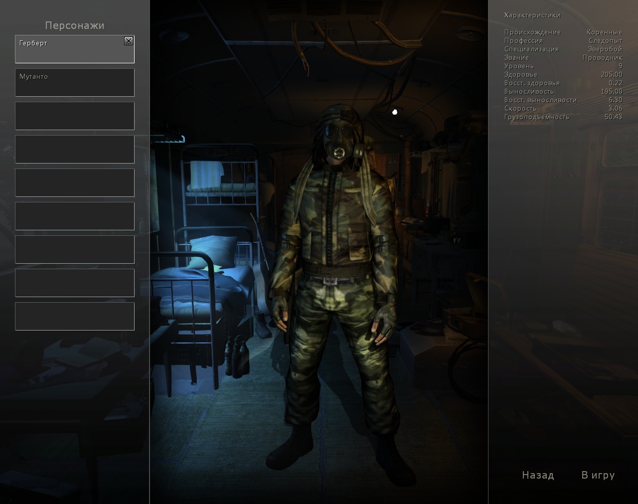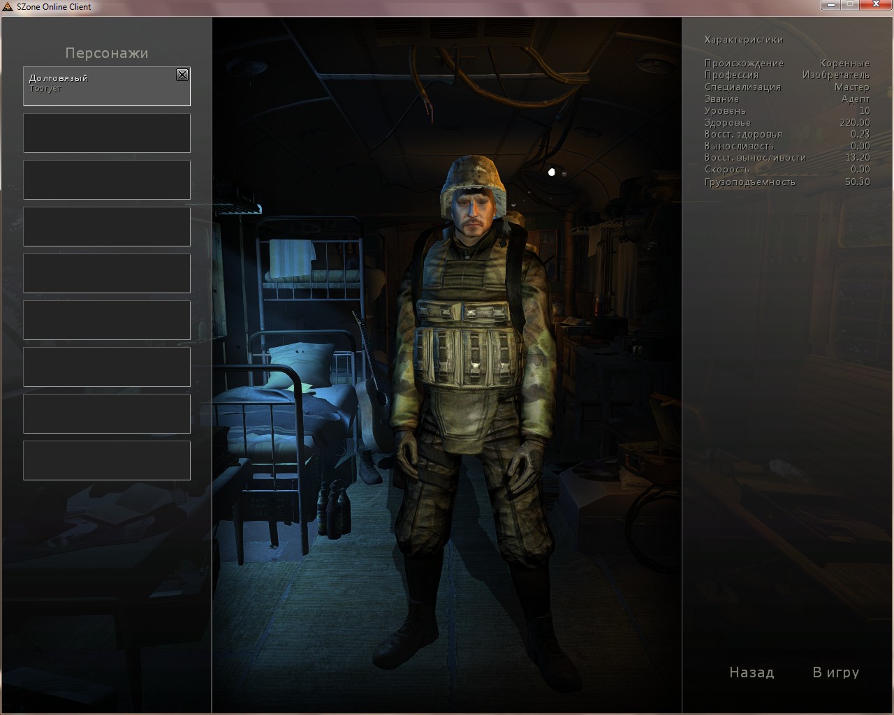 10) Скрин окна с персонажами