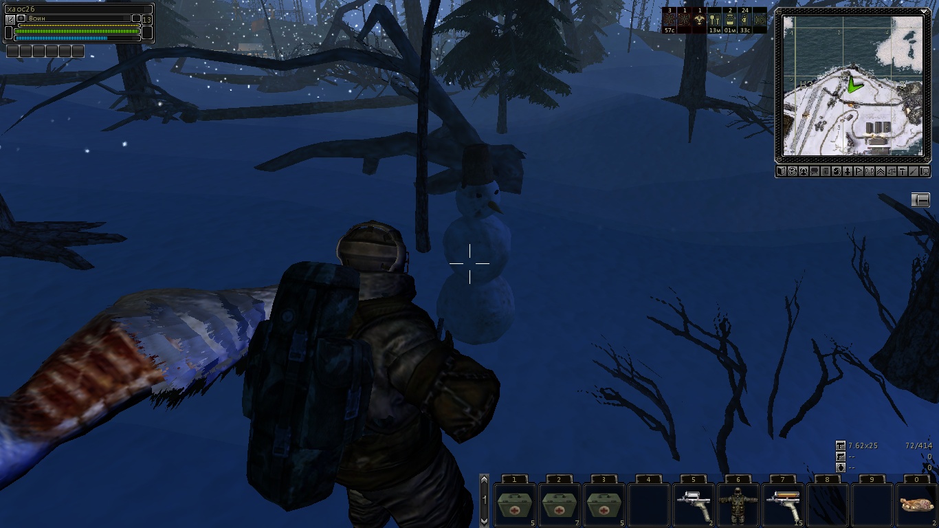4.ЗАТЕМ ОБОЙДЯ ВСЕХ СНЕГОВИКОВ ИДЕМ НА ПИРС (КВ.В3-4) ТАМ ПОЯВЛЯЕТСЯ СНЕГОВИК,УБИВАЕМ ЕГО ВОТ НАГРАДА-