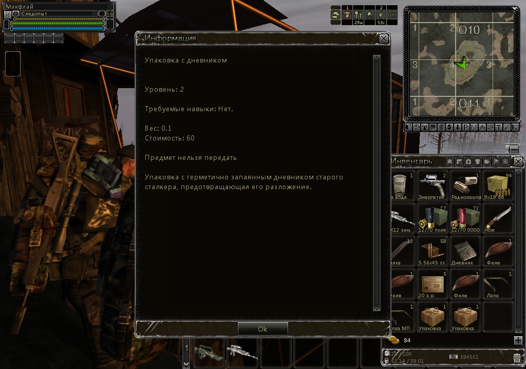 5) Доктор (Где найти НПС: на Станции) Говорим с ним о ранениях и их лечении награда - опыт: +10; вещь: аптечка автомобильная Перетаскиваем аптечку в первый слот! Доктор продаёт: аптечка автомобильная - 225 р., антирад - 6750 р., бинты - 450 р. Может подлечить: обычное лечение - 50 р., лечение радиации - 300 р.