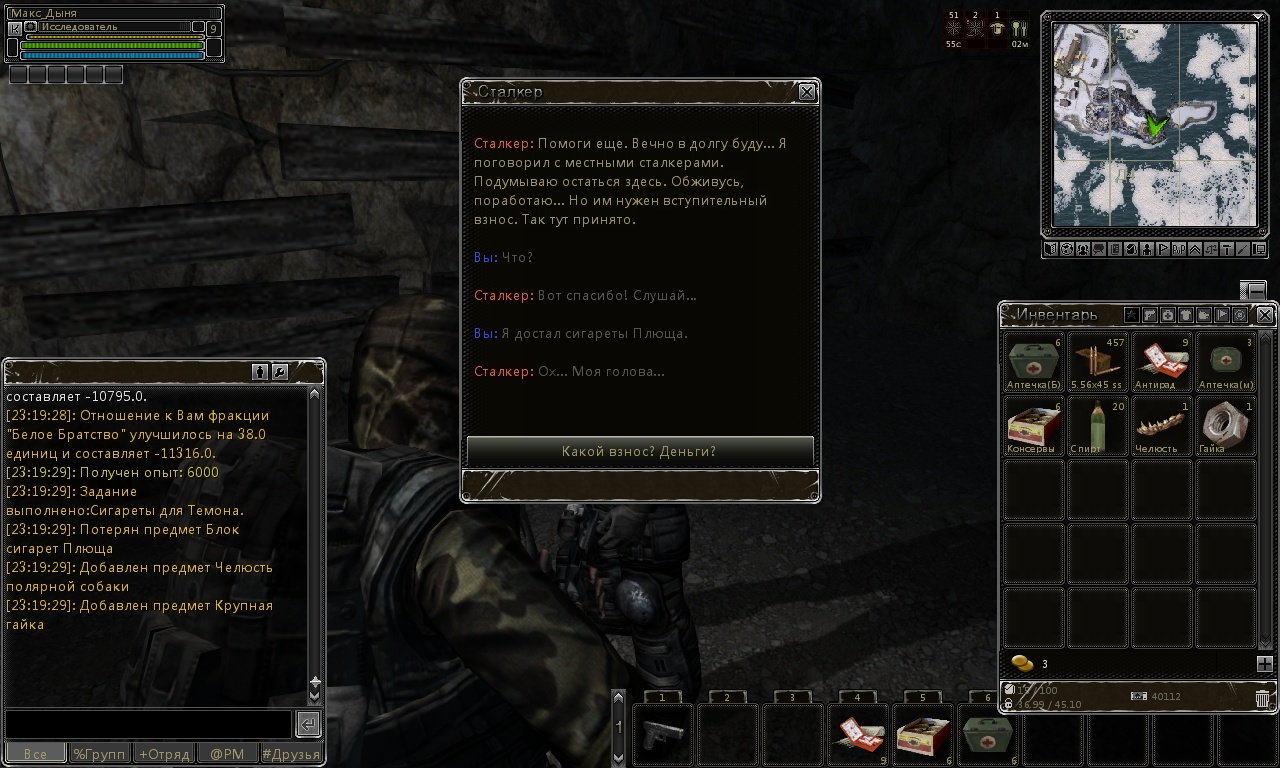 P.S.После убийства крысы опыт +1, после каждой 5-й крысы дополнительный опыт +40, после 10-й дополнительный опыт +90, после 20-й дополнительный опыт +190 После поднятия каждого Волоса БД опыт +1, после каждого 5-го дополнительный опыт +10, после 10-го дополнительный опыт +20 После поднятия каждого Разбитого Экрана +5/+1, после каждого 3-го дополнительный опыт +7, после 7-го дополнительный опыт +9, после 11-го дополнительный опыт +11 Алгоритм аналогичен для любых видов мутантов/артов, только опыт за разные виды разный - чем сильнее уровень мутанта/арта, тем больше опыта дают! При перемещении от одного костра/точки возрождения к другому опыт +1, после каждого 10-го дополнительный опыт +20, после 50-го дополнительный опыт +50 Также за разговоры/действия от НПС к другому НПС дают дополнительный опыт +30, +60, +150 За убийство игрока вы тоже получаете опыт +9, дополнительный опыт так же зависит от колличества убитых вами игроков! Если вас убили (погибли в аномалии) опыт +5 За обыск тел мутантов дают опыт в зависимости от уровня части мутанта (за каждую часть отдельный опыт) За последовательное убийство 3/7/... разных мутантов тоже дают дополнительный опыт Если вы что-то у НПС: купили, продали, и использовали, а также нашли - то тоже дают опыт +1 За обмен векселей у НПС на з.р. тоже дают опыт